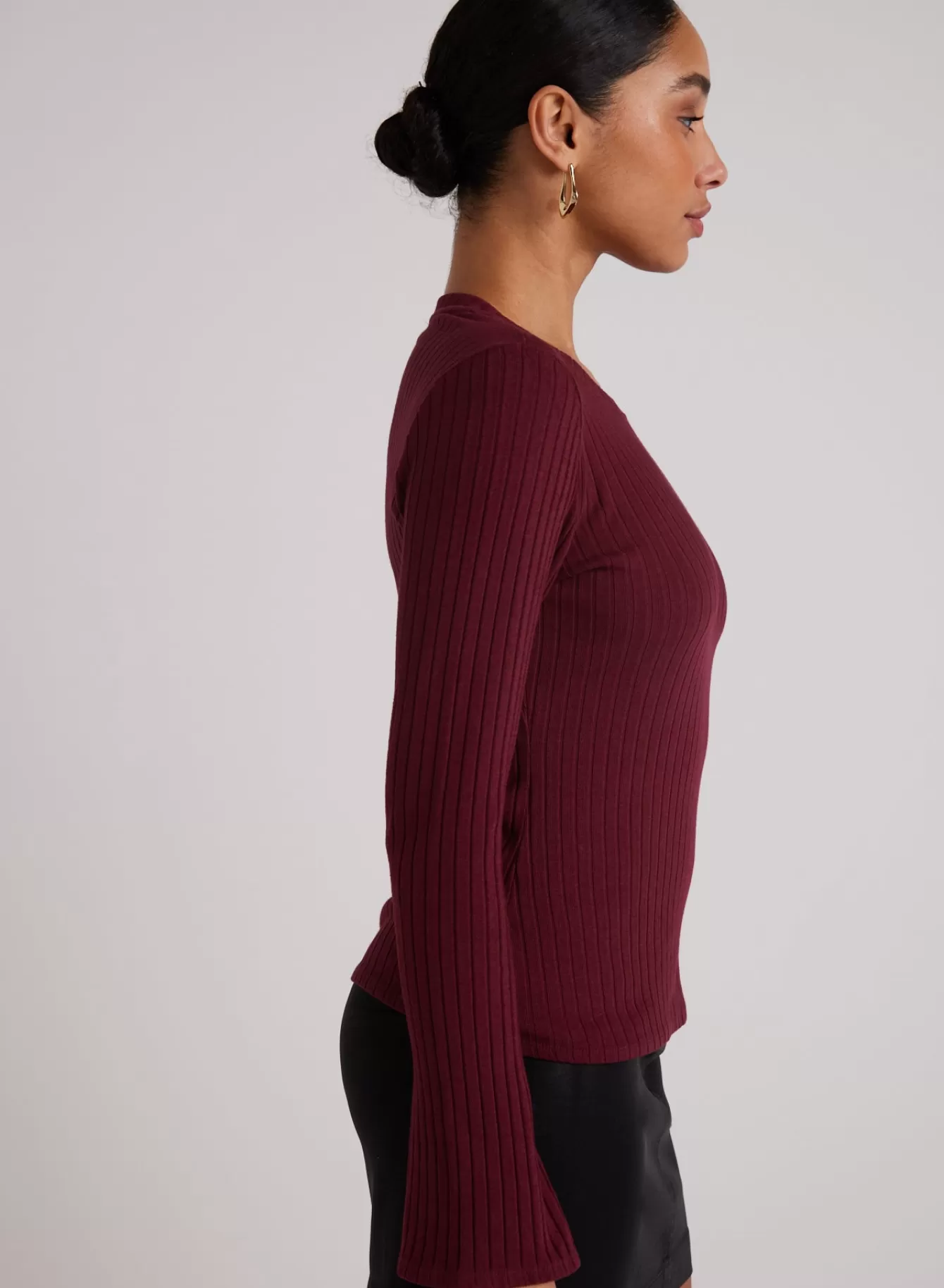 Bella Dahl T-Shirts-Long Bell Sleeve Rib Crew Tee – Sweet Merlot